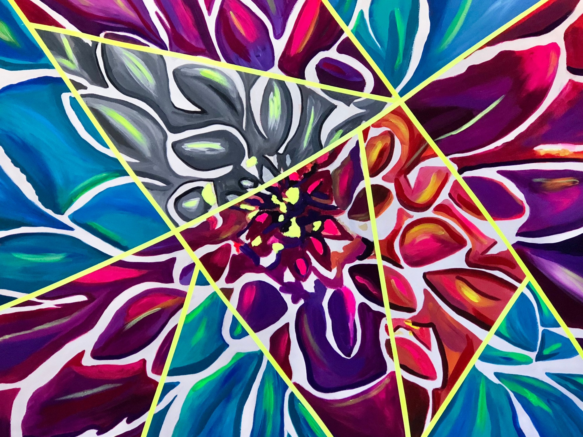 Coming from this dark past I choose to enjoy life to the fullest and focus only on the good. Inspiration from music, dance and nature creates good vibes which translate into my works through the use of vibrant neon color palettes. No matter the subject, my goal is to elicit positive energy to those who engage with my art. Understanding there is still good and love within the world worth fighting for.